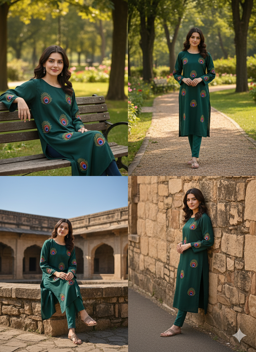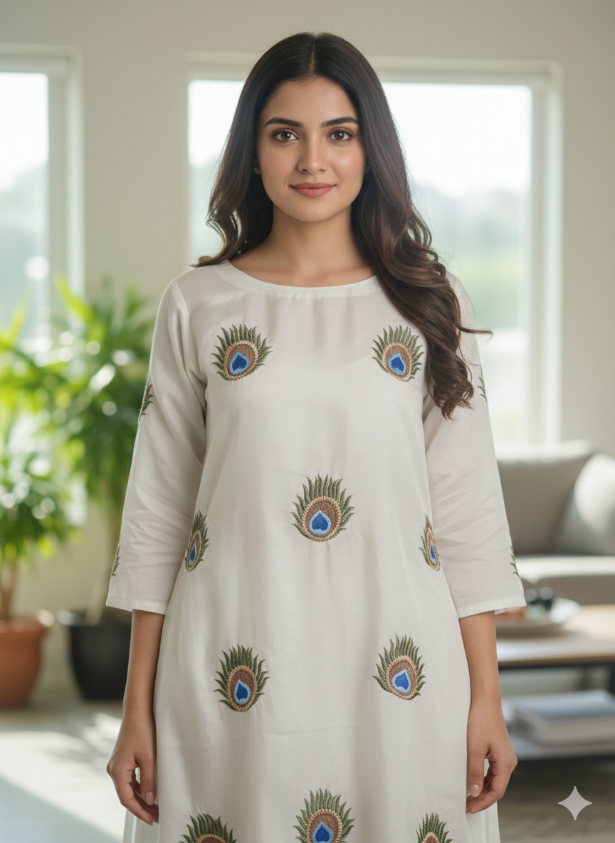 Premium embroidery on peacock theme